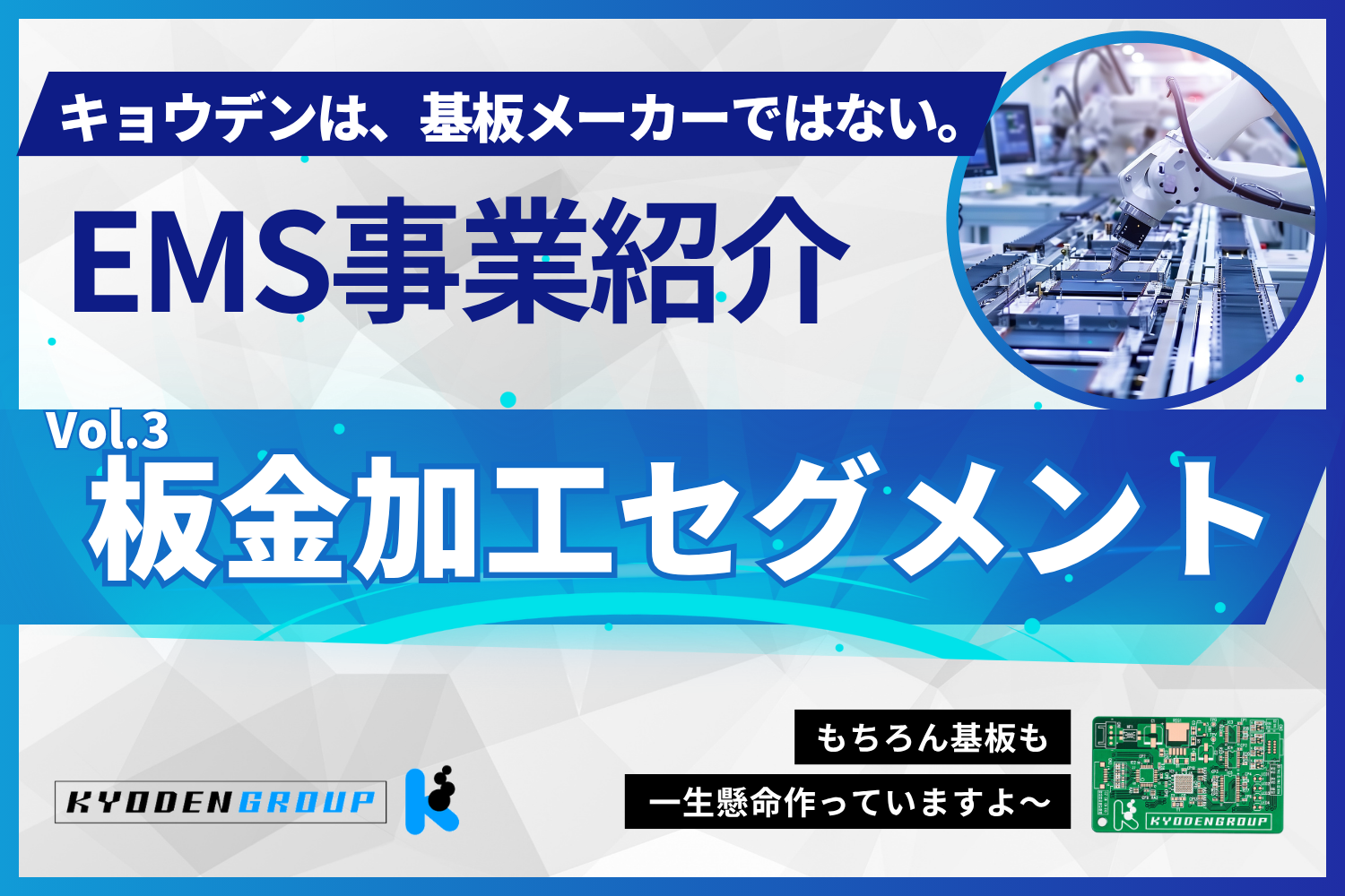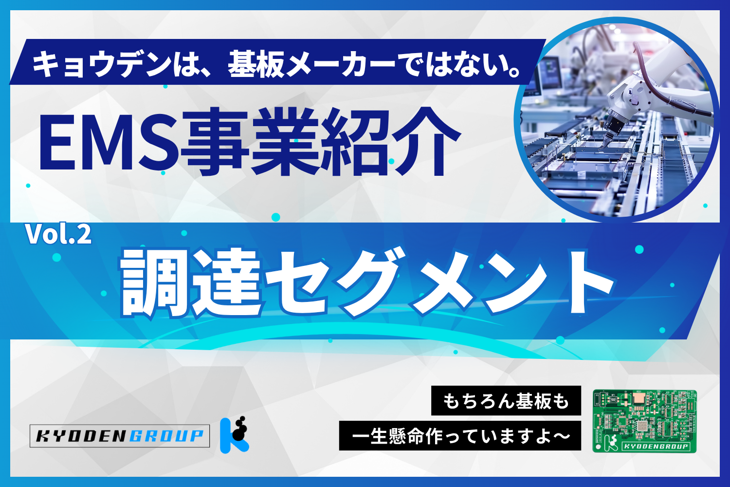 当社はプリント基板製造の短納期サービスを主軸にお客様と歩んできました。そんなキョウデン、実はプリント基板製造だけでなく、回路設計やアートワーク設計・部品手配・搭載、EMSまで、全てのニーズにお応えできます。製品の企画から完成まで。全てを自社…